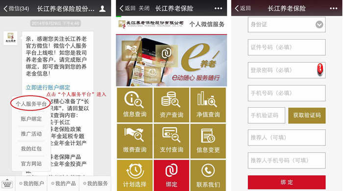 點(diǎn)擊菜單欄“我的賬戶”—“個人服務(wù)平臺”,進(jìn)入個人服務(wù)平臺主頁,點(diǎn)擊“綁定”,填寫相關(guān)信息,輕松完成賬號綁定!