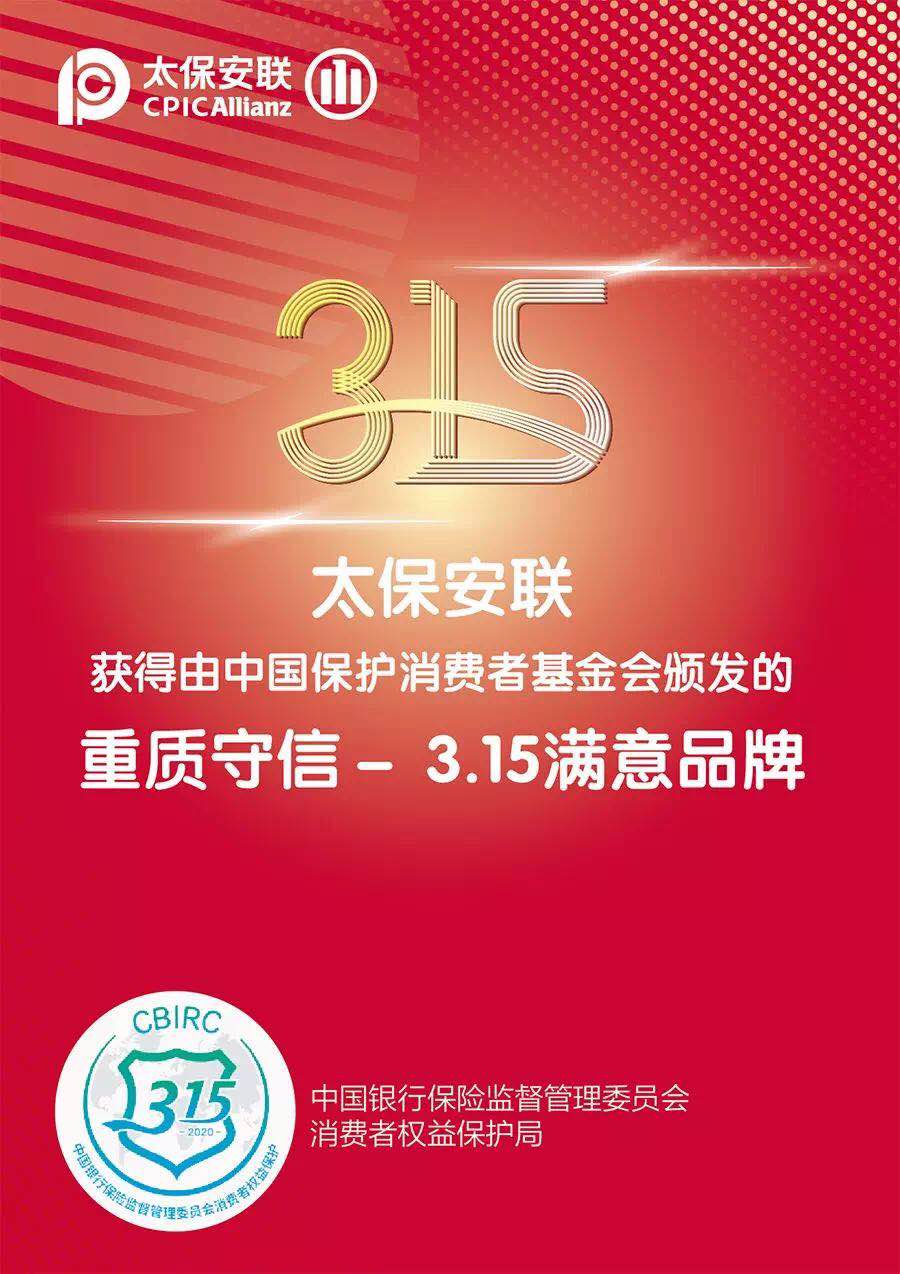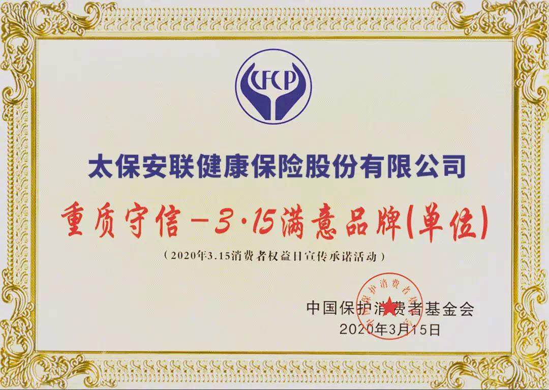 太保安聯(lián)獲得“重質(zhì)守信-315滿意品牌”