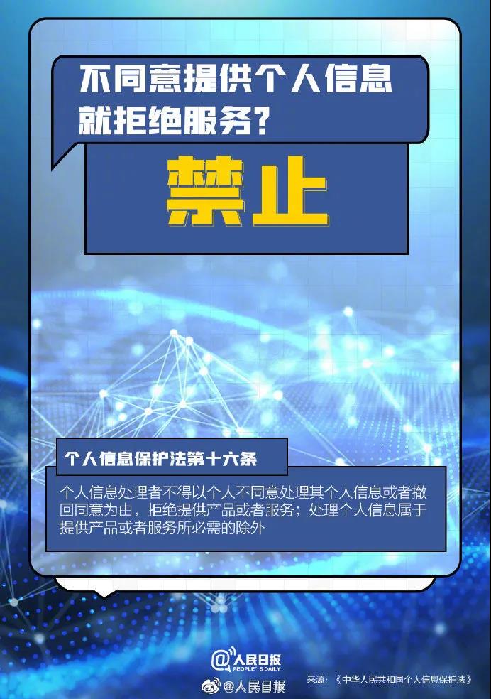 嚴(yán)禁“大數(shù)據(jù)殺熟”,APP不得強(qiáng)制推送個(gè)性化廣告,不得非法收集、使用、加工、傳輸他人個(gè)人信息,不得因用戶不同意提供信息拒絕服務(wù)……《個(gè)人信息保護(hù)法》今起實(shí)施,為信息保護(hù)加上一把法律“安全鎖”,看圖了解一下——
