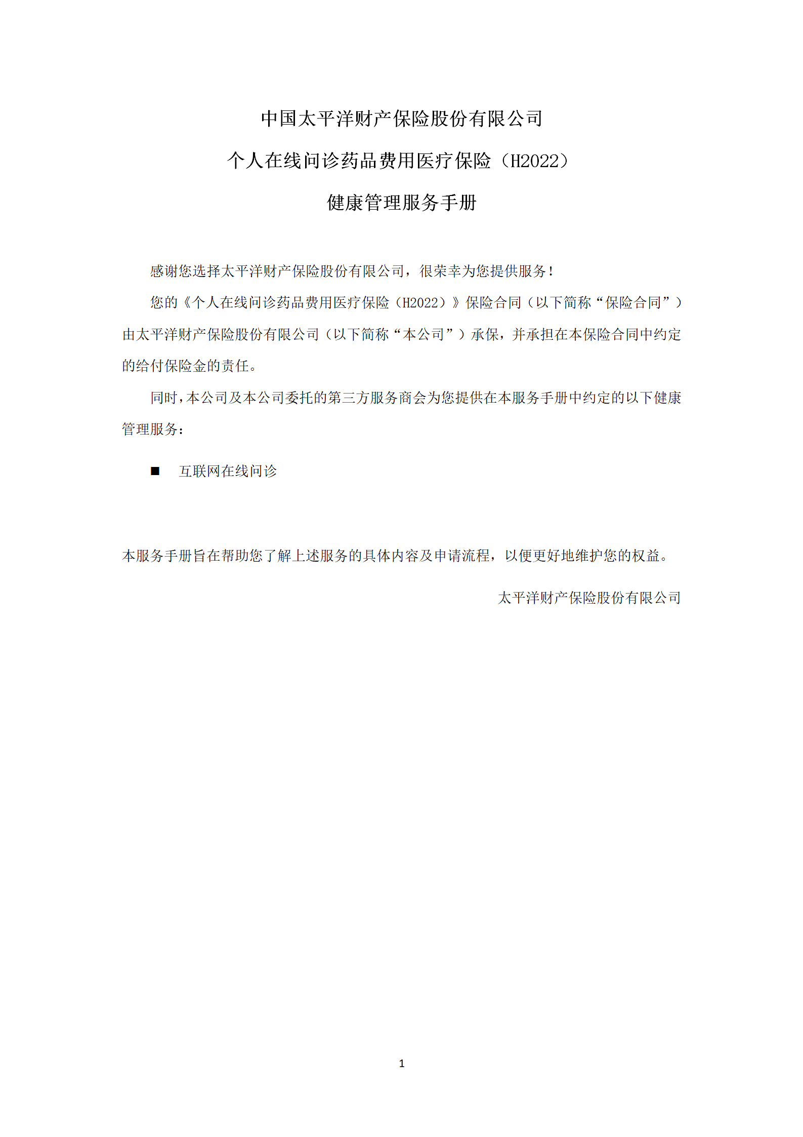 個人在線問診藥品費用醫(yī)療保險(H2022)服務(wù)手冊_01