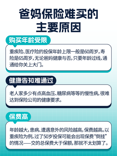 很多朋友都有這樣的經(jīng)歷: 想給50歲以上的爸媽買保險,又難又貴!