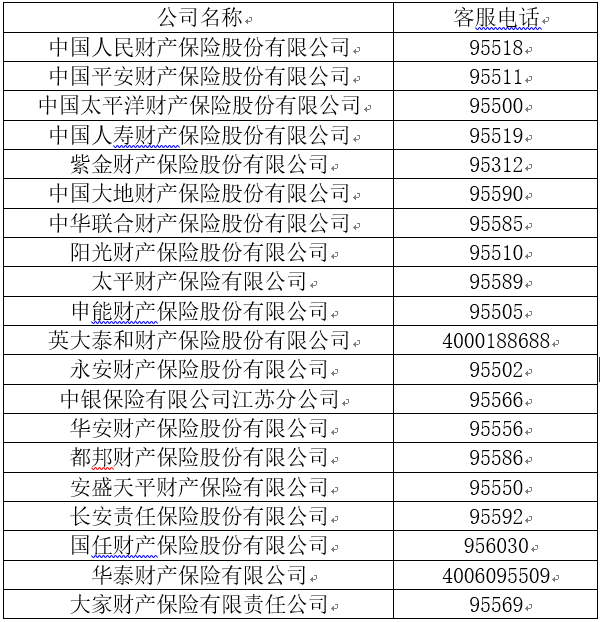 各財(cái)產(chǎn)保險(xiǎn)公司客戶服務(wù)電話