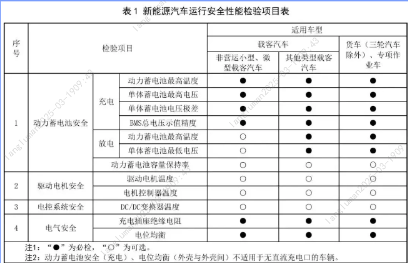 2025年3月1日起,《新能源汽車運(yùn)行安全性能檢驗(yàn)規(guī)程》正式實(shí)施,這是我國首部專門針對(duì)新能源車的安全檢測標(biāo)準(zhǔn),電池安全等納入年檢范圍!